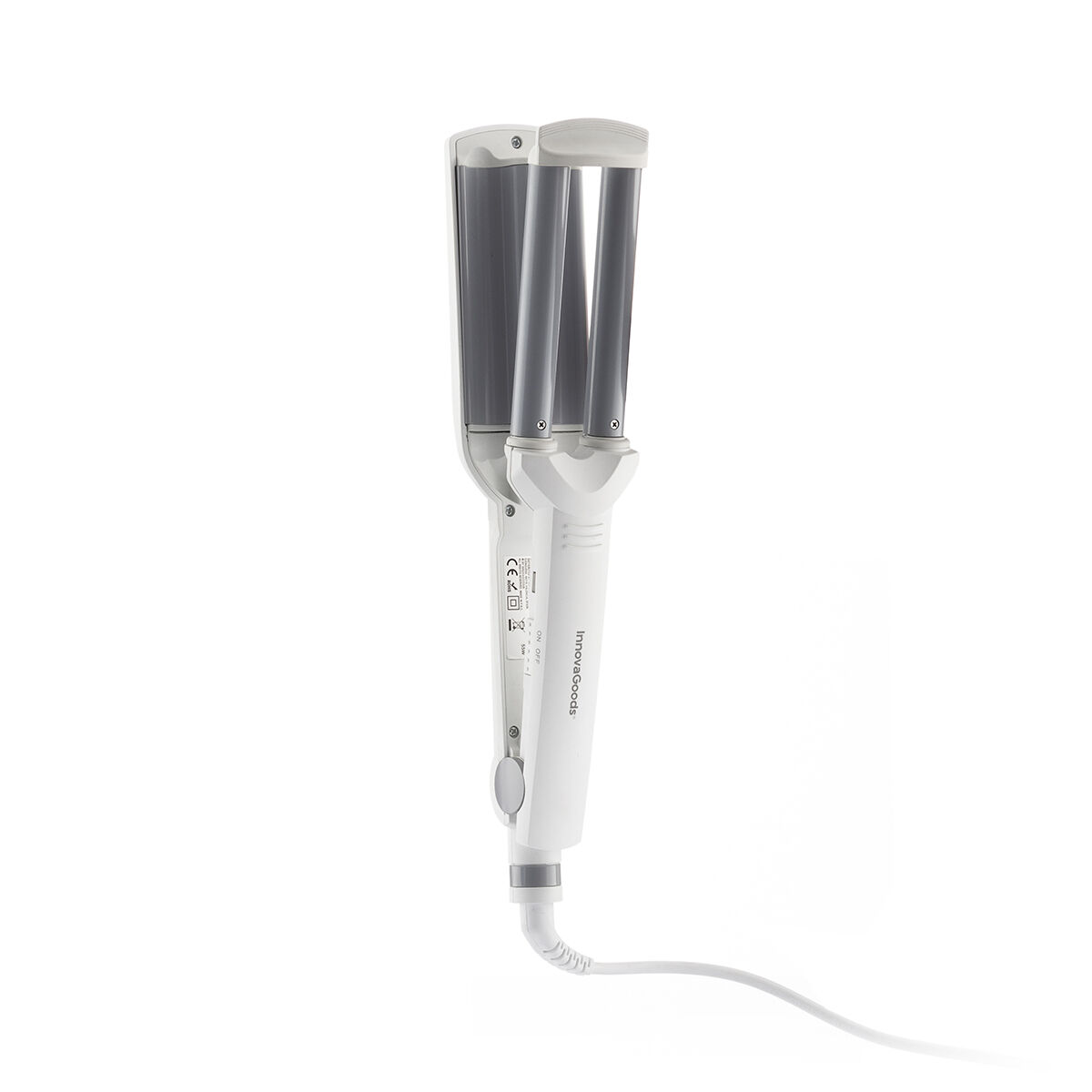 A hair iron with an innovative triple bar design, an ideal shape for styling waves with total ease and convenience for achieving optimal and professional results. It enables you to create wide, marked and defined waves for a special occasion or soft waves for a natural daytime looking seconds. The PTC technology makes the iron heat up quickly (it reaches maximum temperature in just 2 mins) and lengthens its durability. It has 3D ceramic plates that don’t harm the hair and create less friction, thereby reducing snags and pulls. The heat is distributed evenly at a constant temperature (200 ÂşC) and provides complete protection for the hair. The cable can revolve 360Âş and is extra long, with a length of 180 cm, to make the iron easier to use. It has an on/off button and an LED indicator to show it is switched on. This hair iron has a power of 55 W, is lightweight and compact and includes instructions for use.