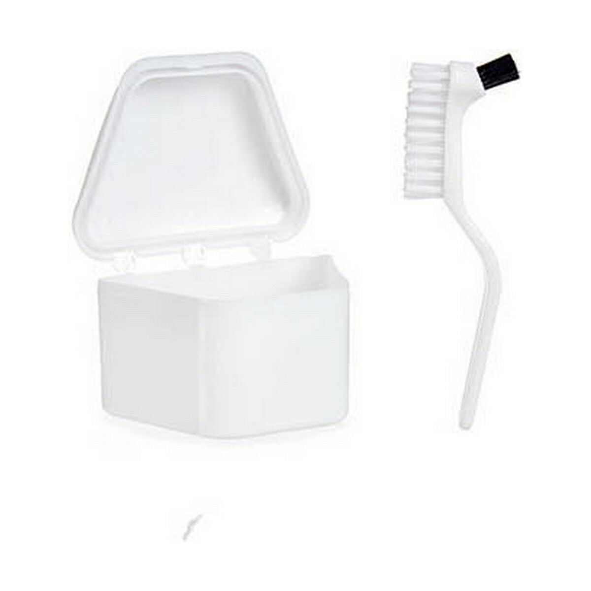 The denture care set by Berilo is a practical and functional solution designed for the oral care and hygiene of dental prostheses, ideal for those who want to keep their dentures clean and protected at all times. This set, made from durable polypropylene that is easy to clean, includes a white case that provides safe, hygienic, and discreet storage both at home and while traveling. The case is lightweight and compact, protecting dentures from impacts and external contaminants. In addition, the set features a special cleaning brush, perfectly suited to effectively remove food debris and plaque, making daily cleaning routines easy and thorough. Focused on functionality, the two-piece design allows for simple management and transport of accessories, optimizing daily organization. This set combines durable materials with a simple and efficient presentation, meeting the basic care needs of denture users. A reliable choice for those seeking practicality and cleanliness in the daily maintenance of their dentures.