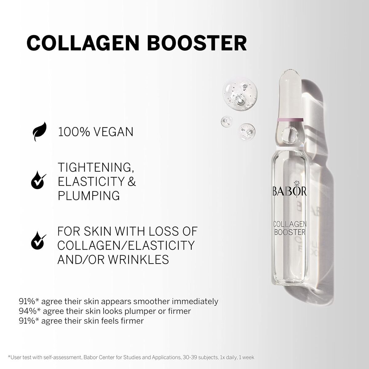The Collagen Booster by Babor is a targeted treatment designed to enhance the skin’s natural collagen production, specially formulated for dry skin. This product comes in a compact 2 ml format, ideal for precise and controlled application. Its composition includes preservatives such as potassium sorbate, sodium benzoate, sodium hydroxide, and sodium lactate, ensuring product stability and safety while maintaining effectiveness. Additionally, its formula is suitable for both men and women, making it a unisex product with a respectful care philosophy, as it is vegan. Made in Germany, it meets high quality and control standards, providing a reliable treatment for visibly improving the elasticity and firmness of dry skin. The texture and concentration are designed to optimize hydration and promote smoother skin, helping to combat signs of aging related to collagen loss. This concentrate is suitable for inclusion in specific facial care routines aimed at revitalization and structural support of the dermal tissue. Overall, the Babor Collagen Booster represents an effective, scientifically backed anti-aging supplement focused on improving the quality and appearance of dry skin from a natural and responsible base.